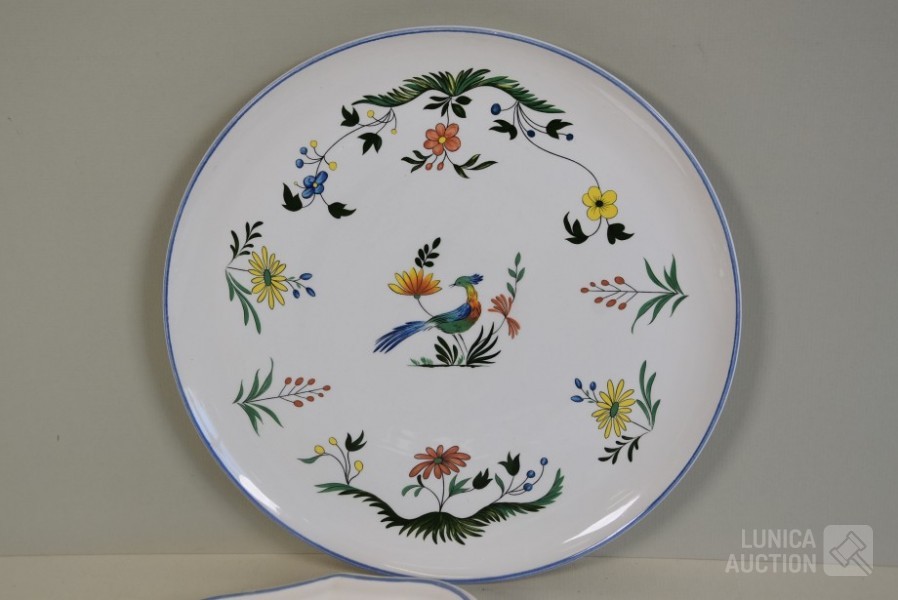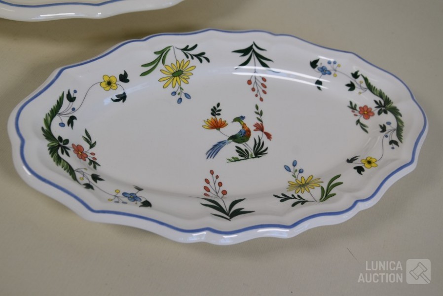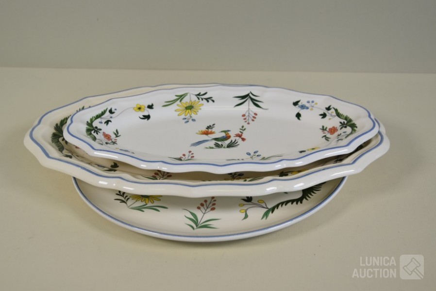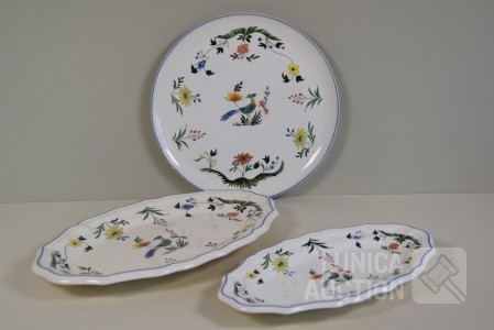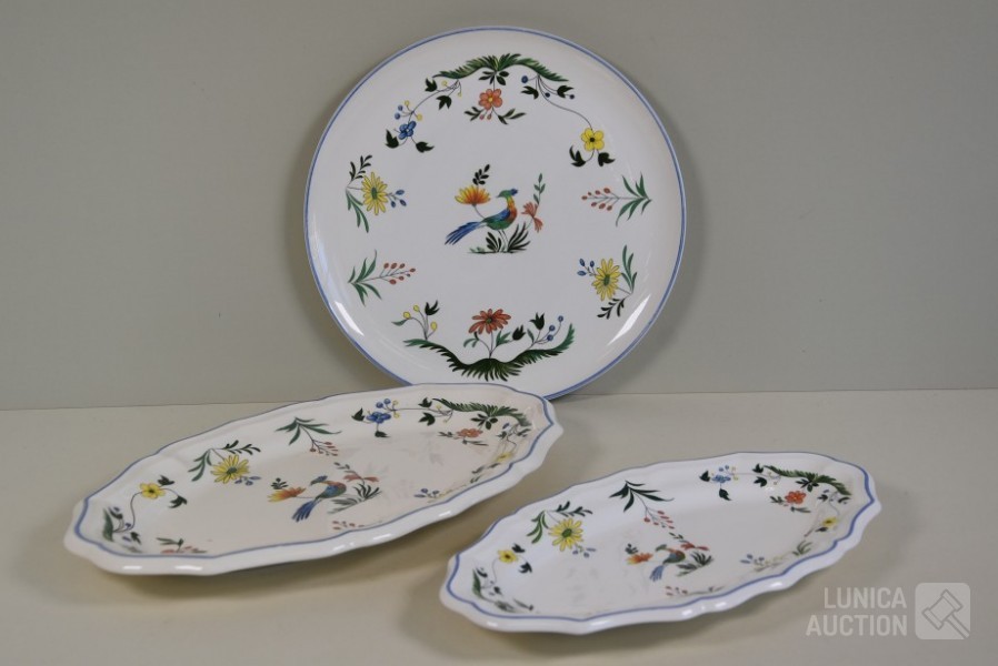 3 schalen, serie "Oiseaux de paradis, decor Grand feu", afmeting 40x26 cm, 36x20 cm, schaal Ø 32 cm