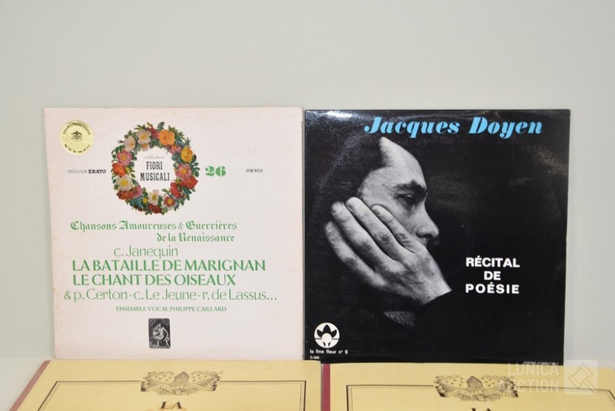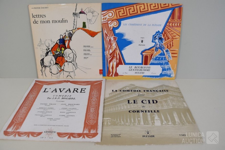 O.a. 4x album "La comedie Française", diverse titels; "lettres de mon moulin"van Alphonse Daudet; Jacq. Doyen; enz. jaren '60 en '70. o.a. 33 toeren platen