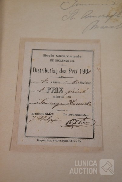 Franstalig; Druk, TAFFIN-LEFORT, 2e editie. Versierd met gravures: In het boek zit een certificaat van een prijsuitreiking in 1900, in de Gemeenteschool van Roclenge (B) Het certificaat is ondertekend door de leraar en Burgemeester. Boek is in matige staat.