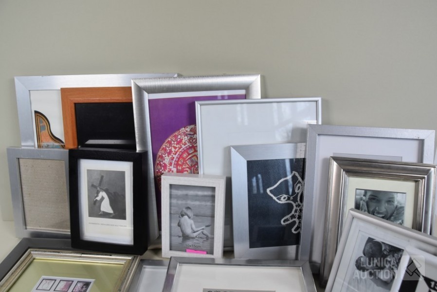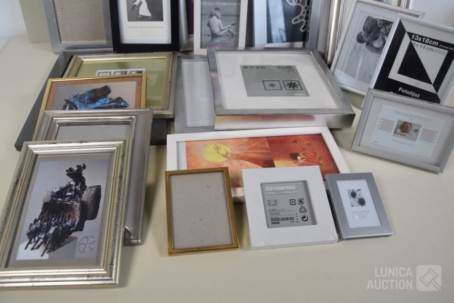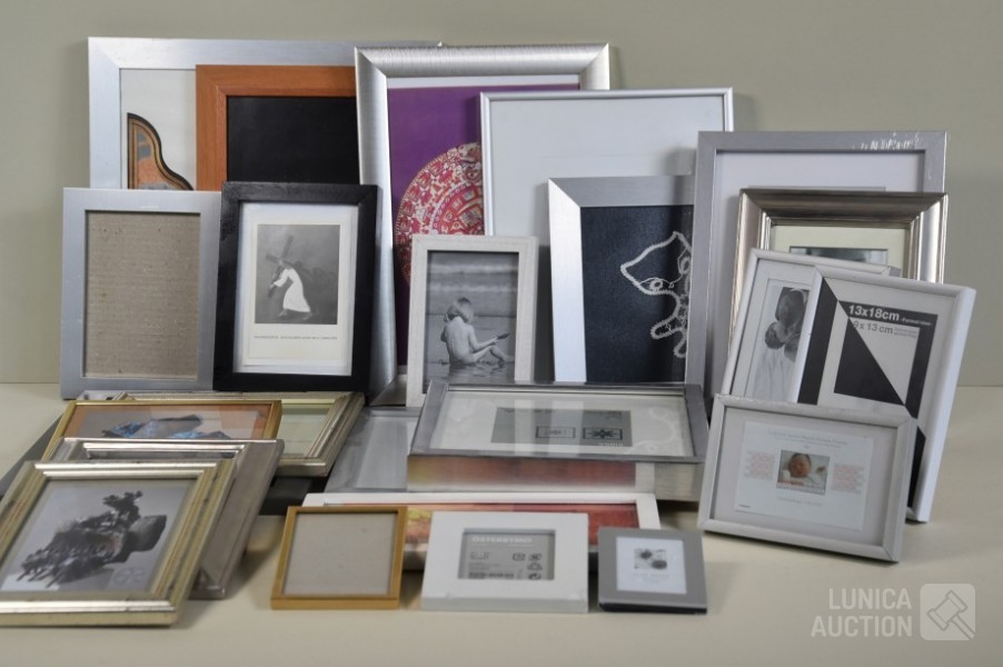 Diverse modellen, afmetingen en materialen. Afmetingen varieren van 7x10 cm tot 35x35 cm. Sommige lijstjes hebben krasjes.