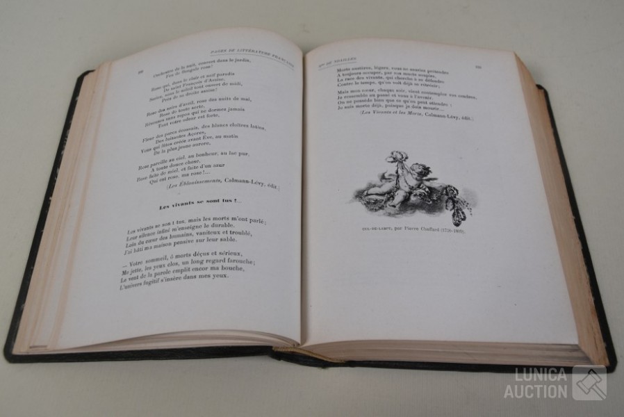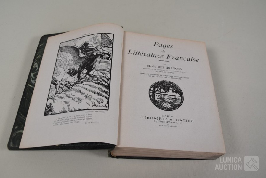 Boek over franse literatuur uit de periode 1800-1920, geillustreerd met gruvures en houtsneden door H Brouteille. Jaren'20. Auteur: Ch.-M Des Granges. 1040 pagina's Franstalig.