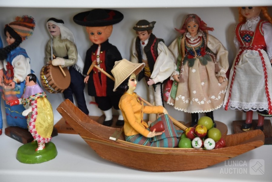 uit diverse continenten. Hoogte variƫrend van 6 tot 27 cm. 2 verhuisdozen met inhoud. Op de meeste sokkels staat de naam van het land.