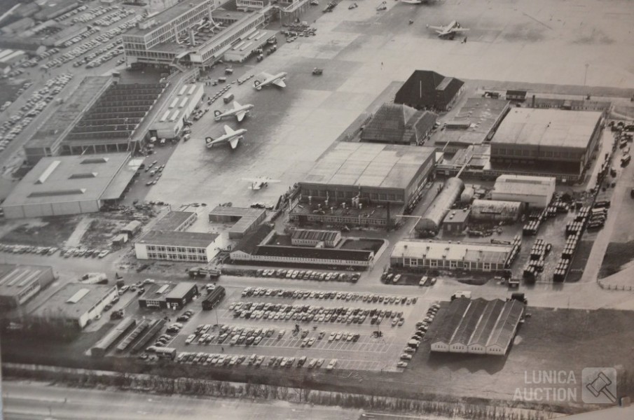 Luchtfoto van Schiphol in de jaren'50, afmeting 57x43 cm, achter glas