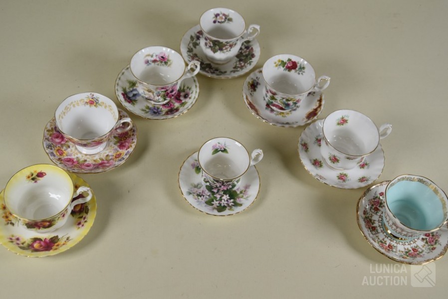 ca. 8 sets kop en schotel Royal Albert/Queens