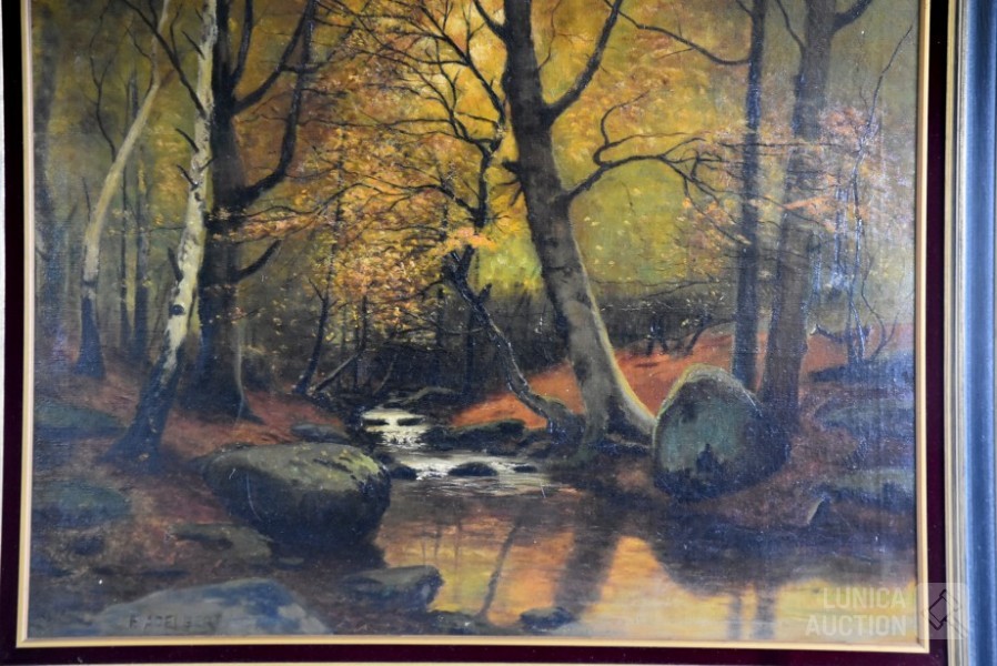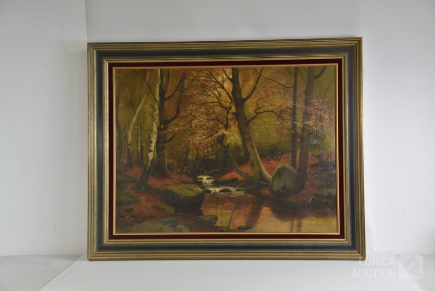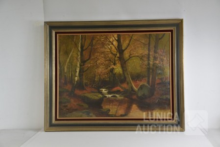 olieverf op doek, "boslandschap"