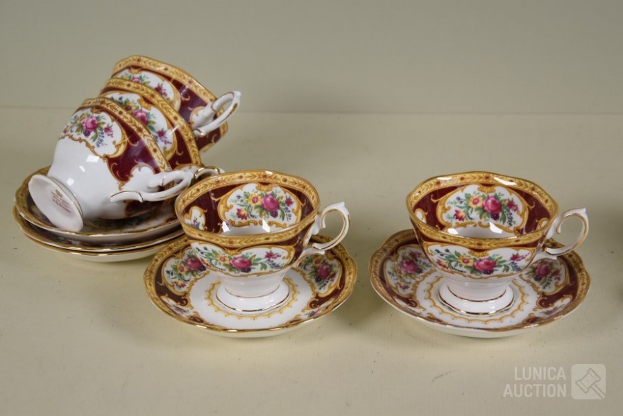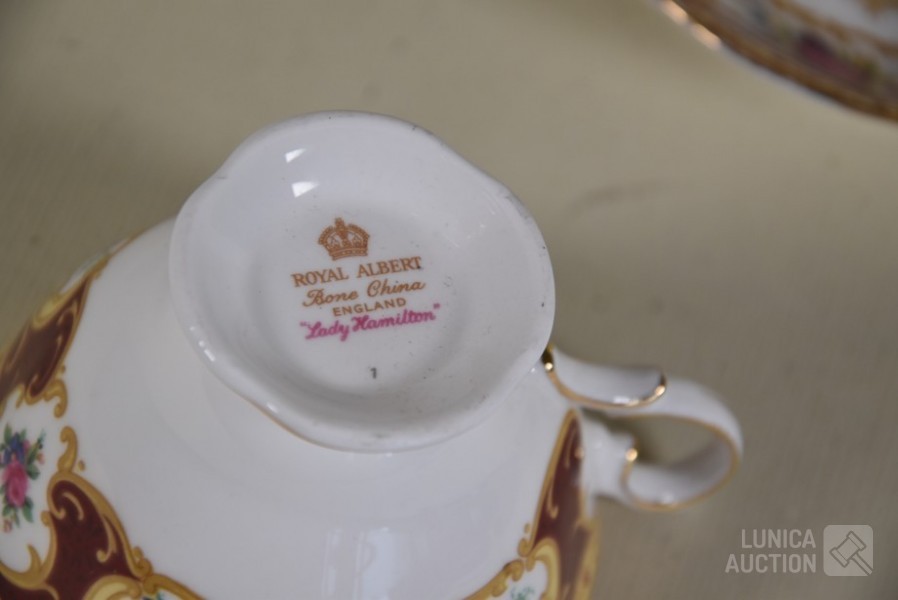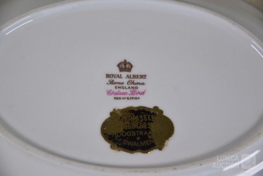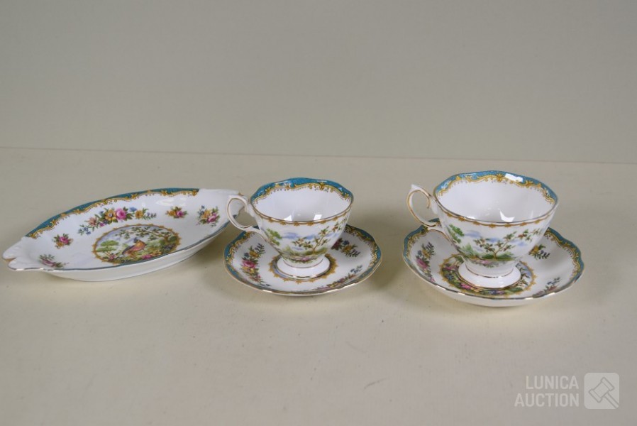 O.a. Decor "Chelsea Bird", 2x kop en schotel, schaal; "Lady hamilton", 5x kop en schotel