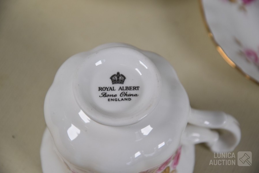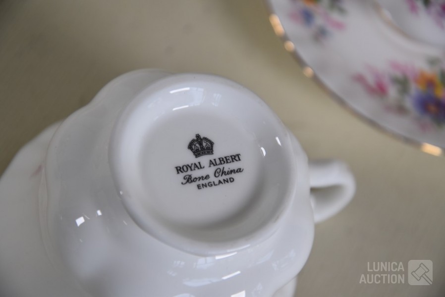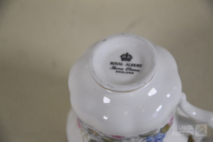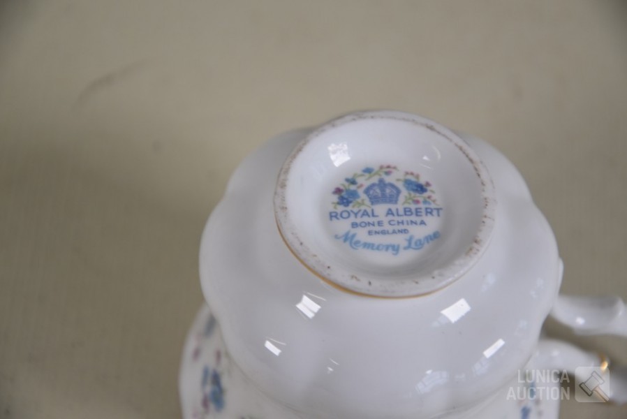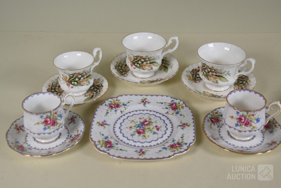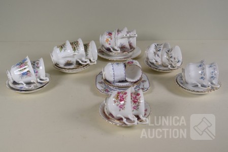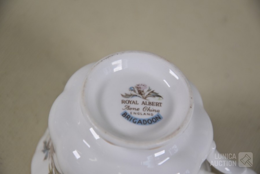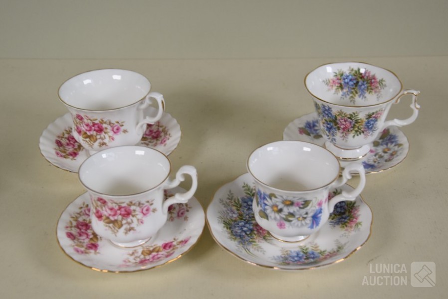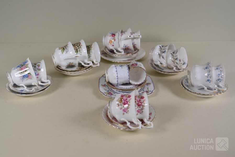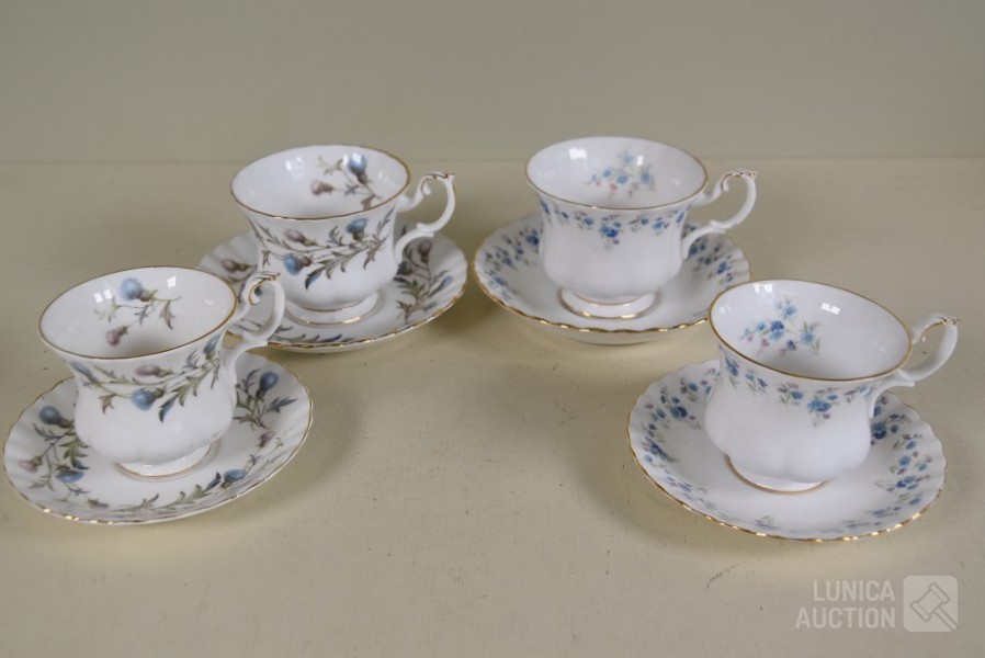 O.a. Decor "memory lane", 2x kop en schotel; "brigadoon" 2x kop en schotel; enz. ca. 8 verschillende decors.