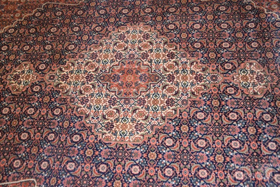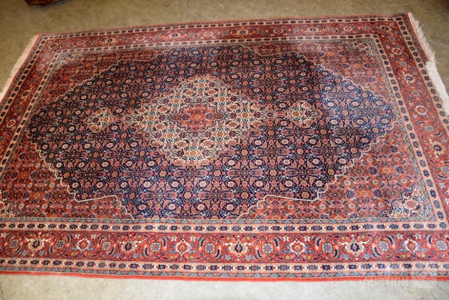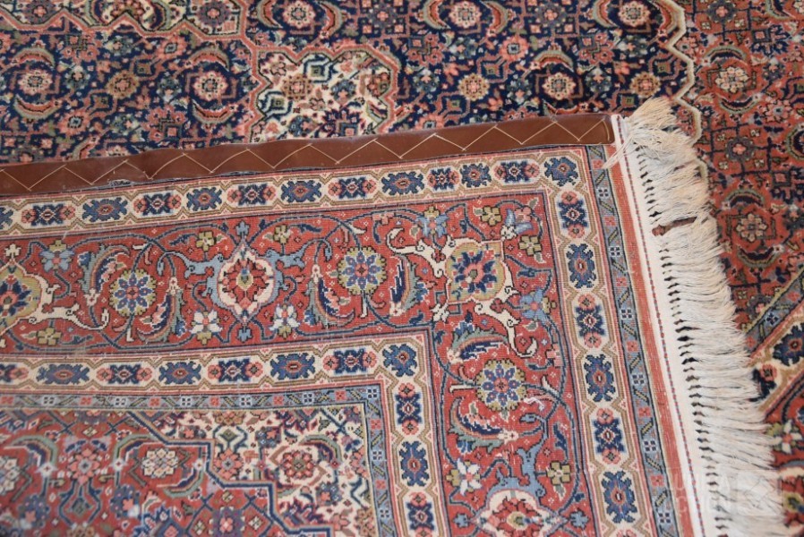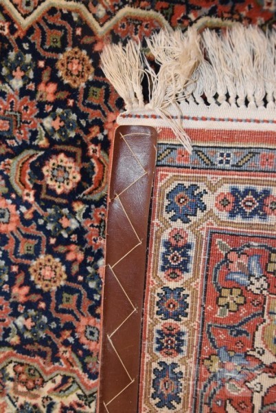 Afmeting 303x202 cm Oorspronkelijke adviesprijs op het etiket € 5759,-- Op de lange zijde is aan de achterkant de rand voorzien van een lederen afwerking."vlekken" op foto is shading ("schijnvlekken")