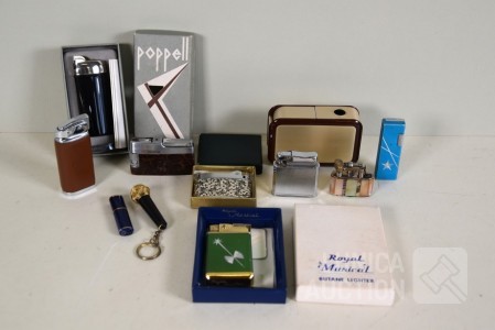 Diverse modellen, o.a ROYAL, POPPEL, COLIBRI, WARCO, MAXIM 8000, CARAVELLE, enz. Deels nog in originele verpakking. De Royal Musicalaansteker heeft speelwerk