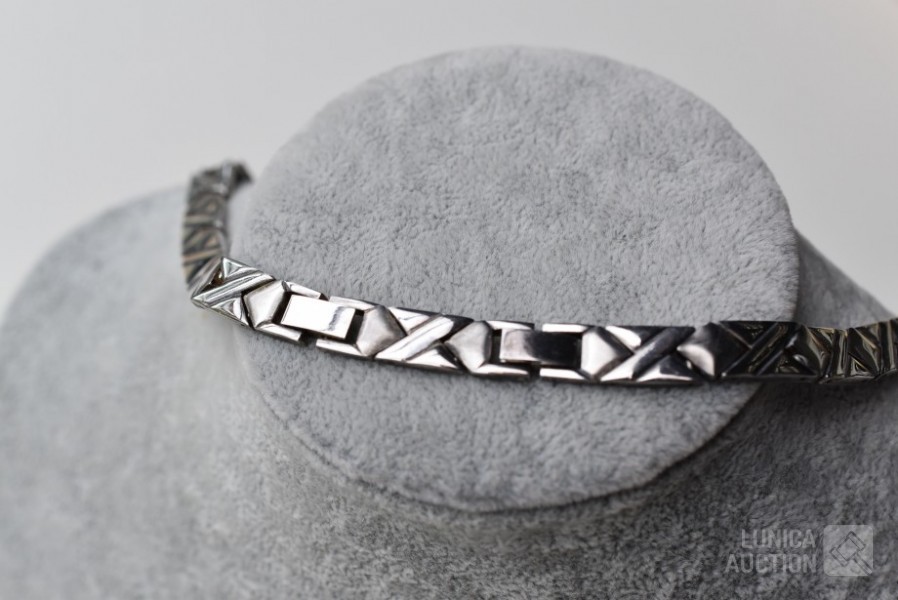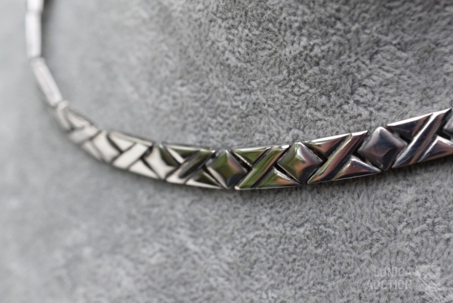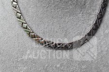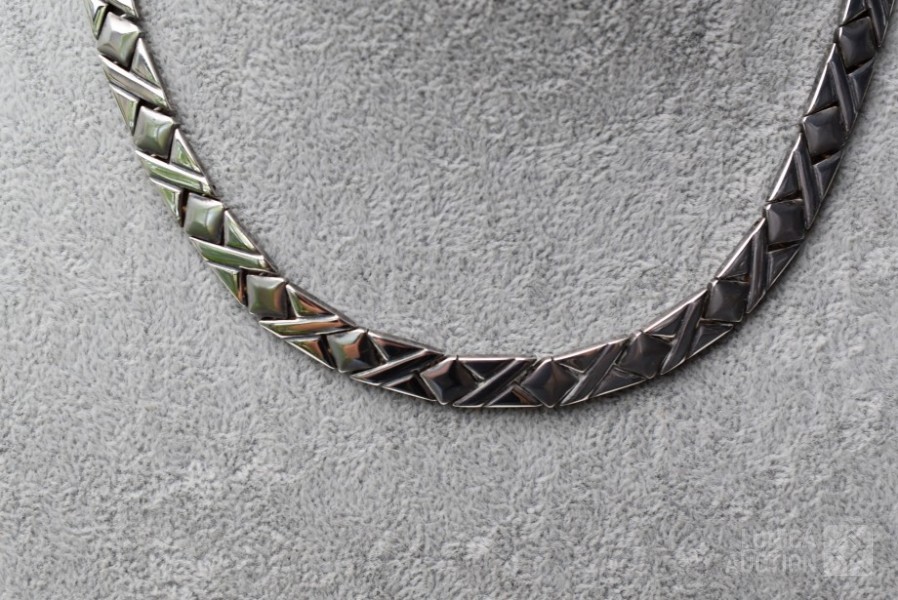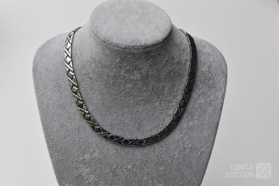 Lengte 44 cm. De halsketting kan 3 schakels worden ingekort. Gemerkt in slot met ZH. Gewicht ca. 67 gram.