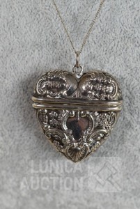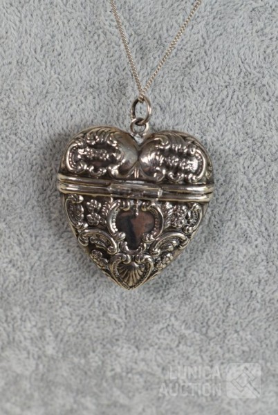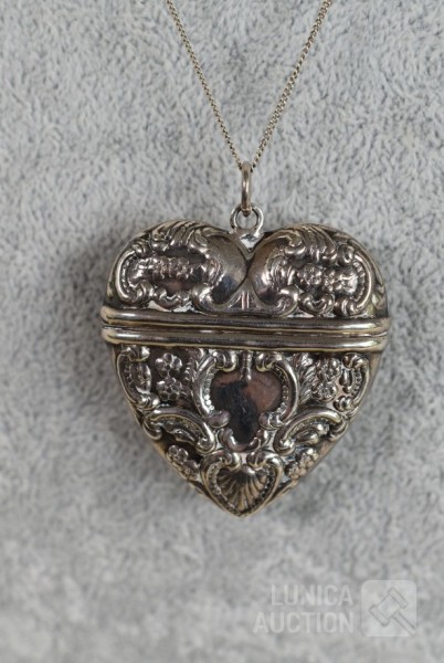 "pillendoos/medaillon" in Victoriaanse stijl. Afmeting ca. 40x40 mm. Gewicht ca. 16,5 gram. Ketting niet inbegrepen.