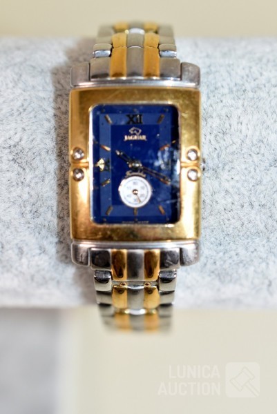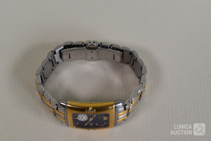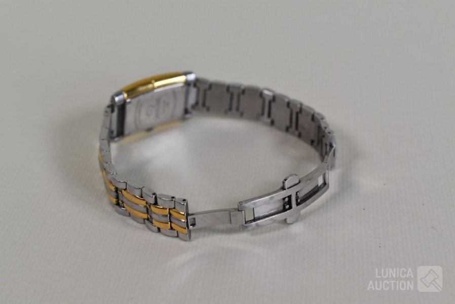 werkend, met lichte gebruikerssporen. Gold plated 10 microns. Glas van horloge heeft gebruikerssporen.