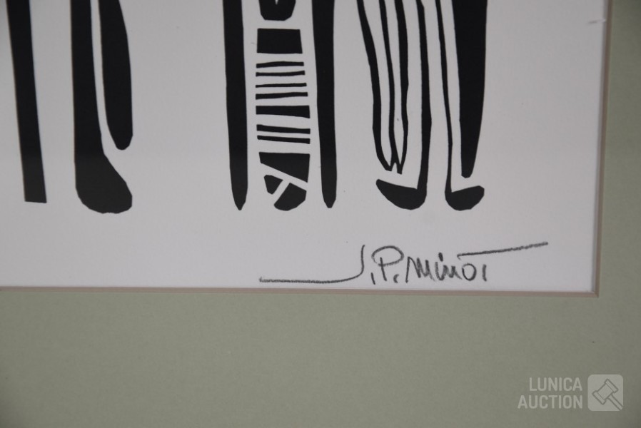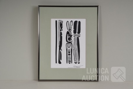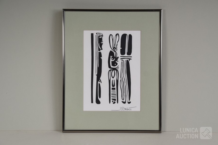Gesigneerd R.O.. Ingelijst, achter glas. Afmeting 40x50 cm