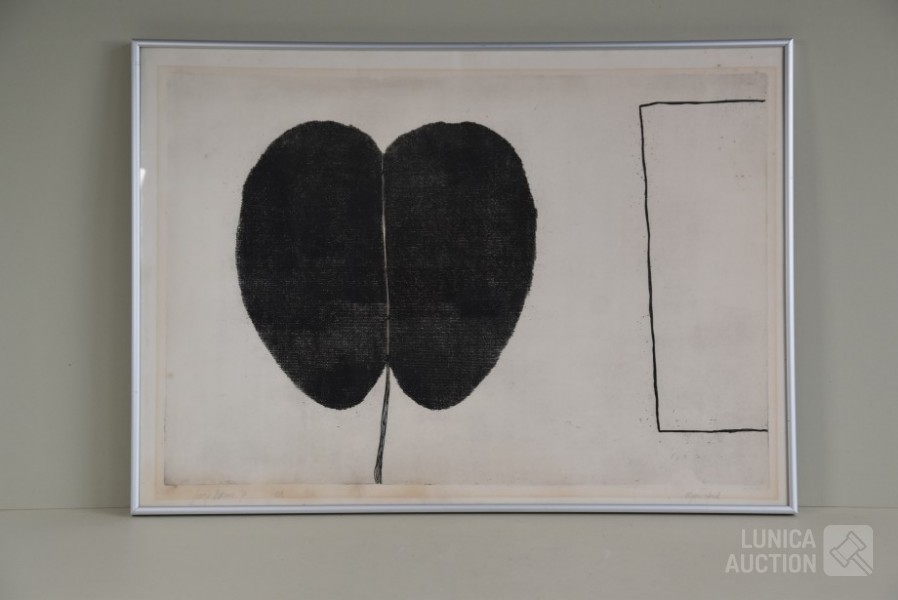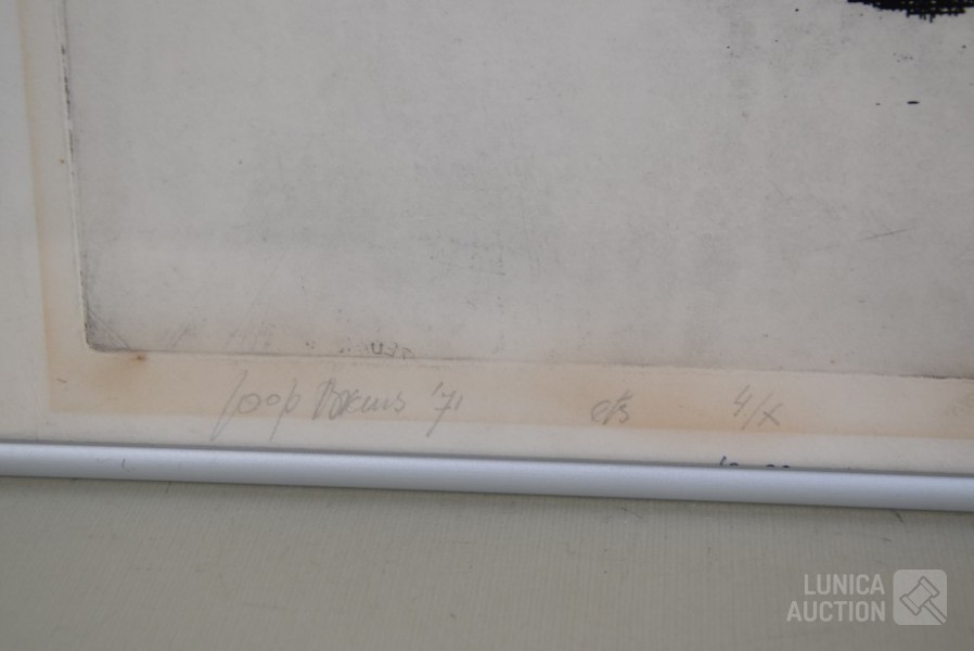 1971, oplage 4/X, eigen druk. Ingelijst, achter glas. Afmeting 70x50 cm