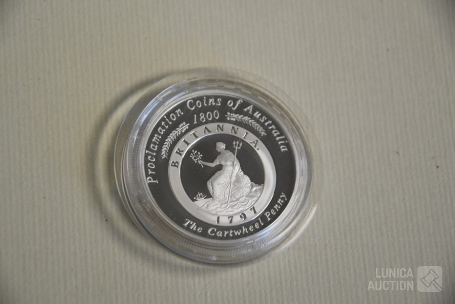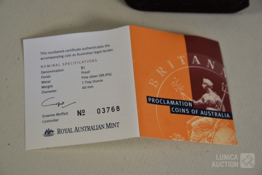 Royal Australian Mint $1 Proclamatiemunt van Australië Cartwheel Penny 1oz .999 Zilveren Proefmunt. In originele verpakking Met certificaat nummer 3768