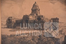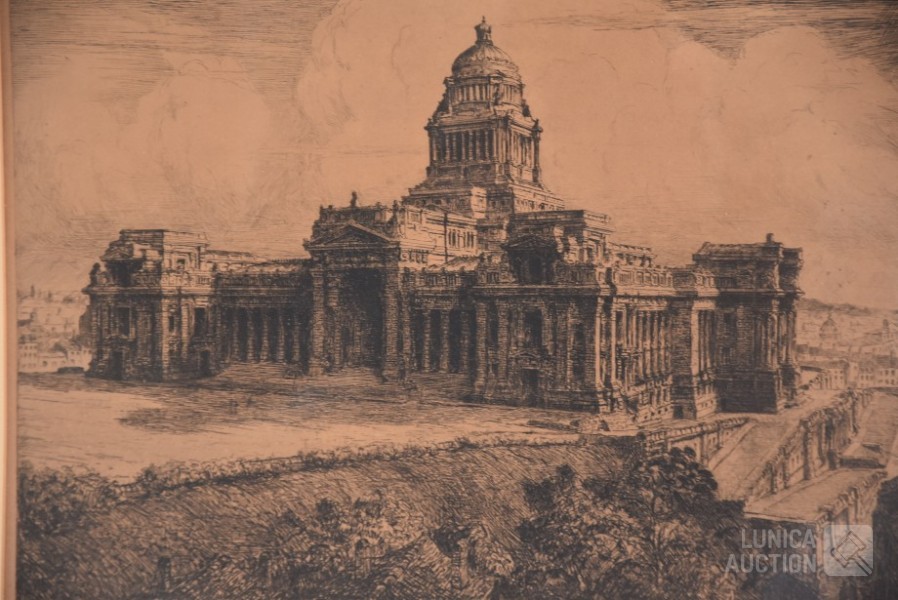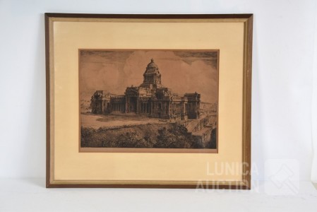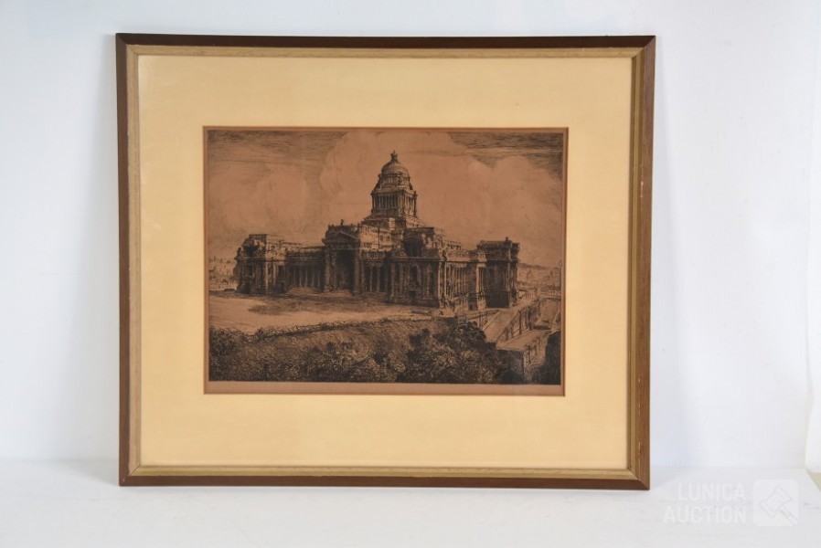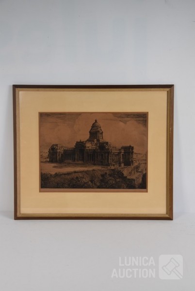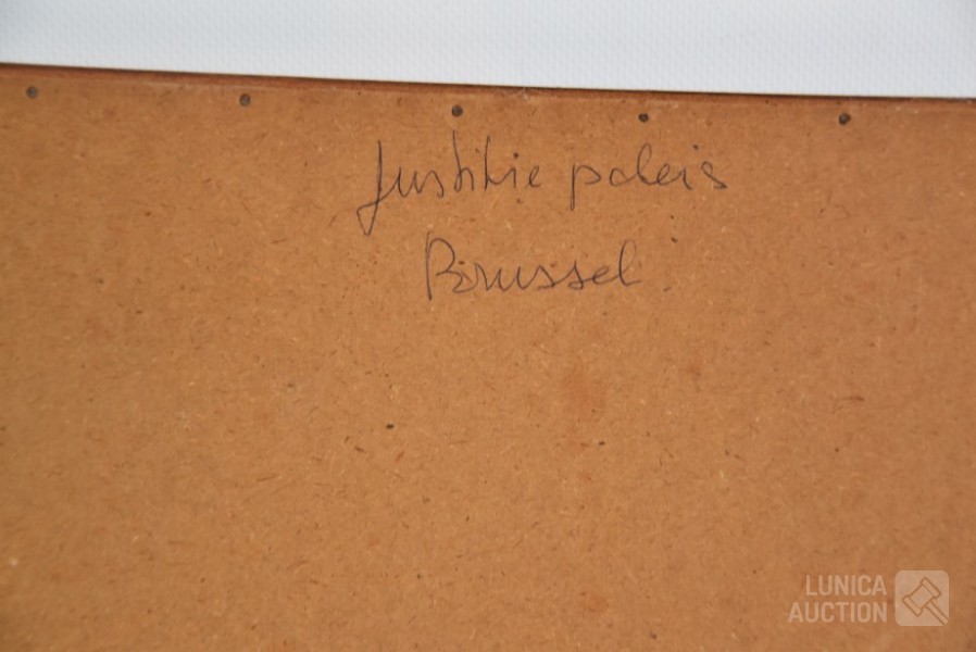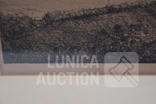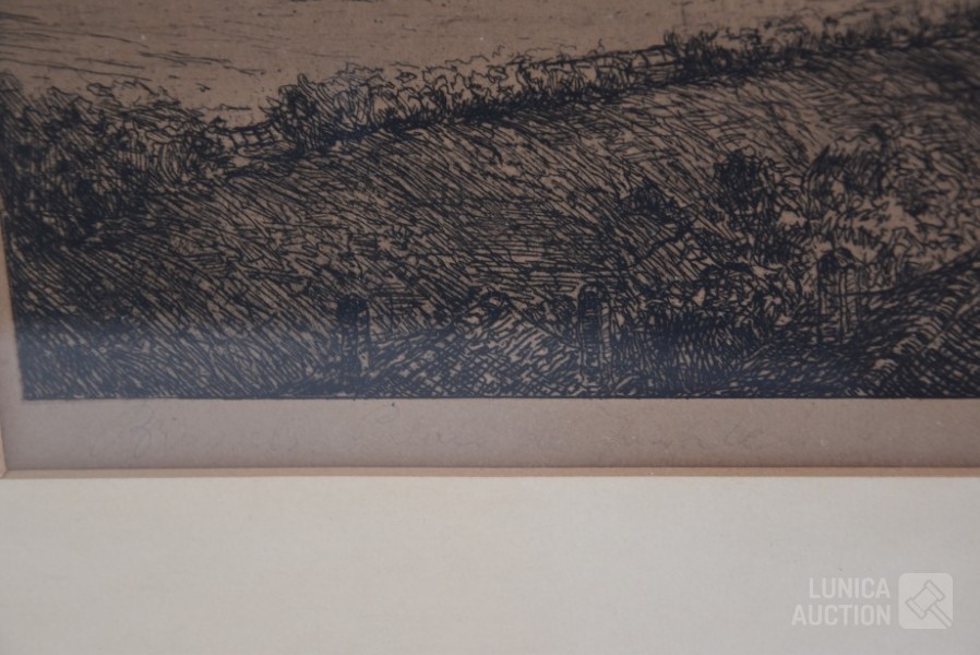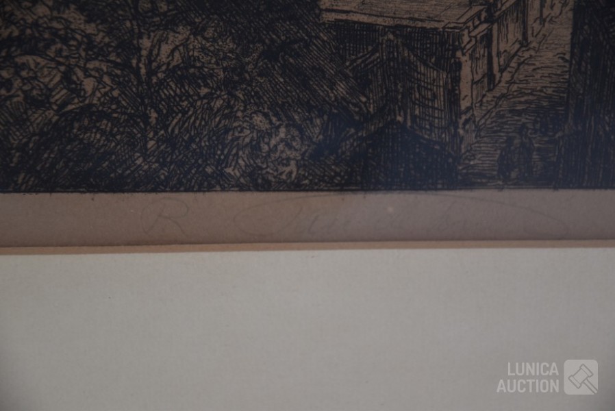 Ingelijst, achter glas. Afmeting 57x47 cm. Het werk is R.O. gesigneerd maar niet leesbaar.