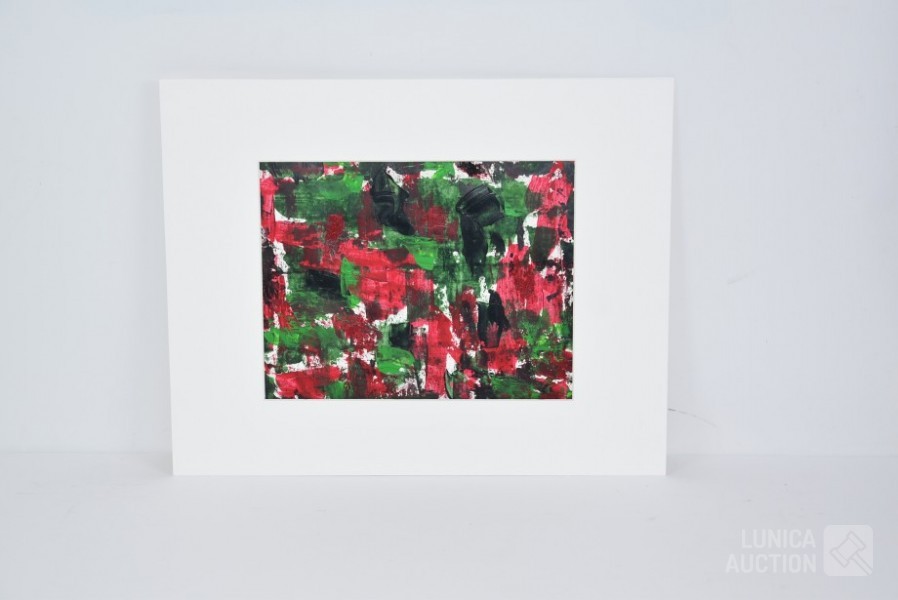 Olieverf op papier, niet ingelijst, afmeting 35x27 cm. Gesigneerd op achterzijde. Passe partout op de foto niet inbegrepen.