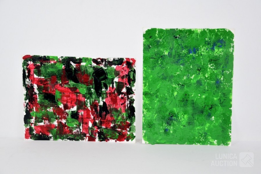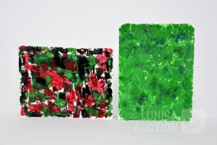 2 stuks, 2002, abstract, "groen" en "groen-rood"