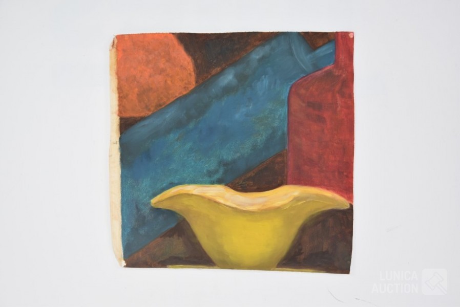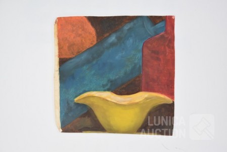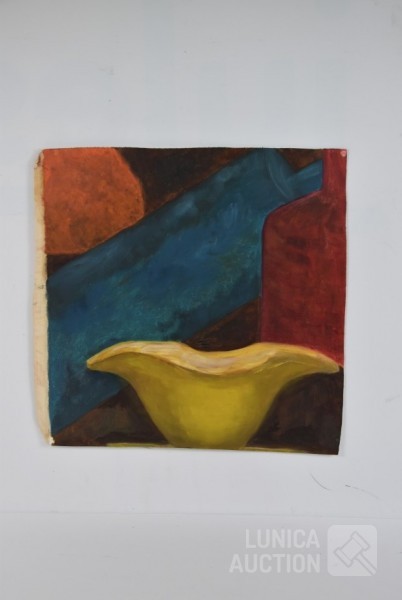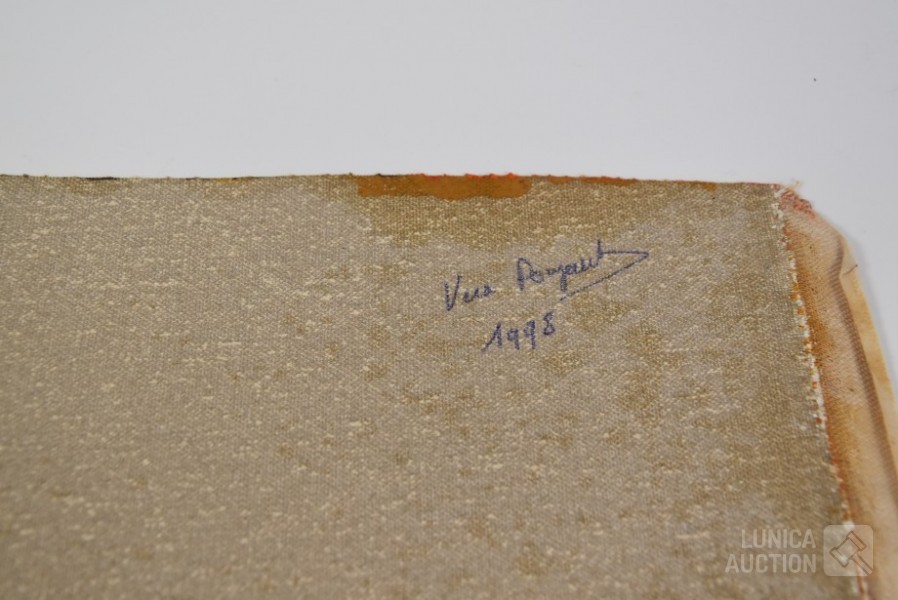 olieverf op doek, niet ingelijst, niet opgespannen, gesigneerd op de achterzijde. Afmeting ca. 40x40 cm