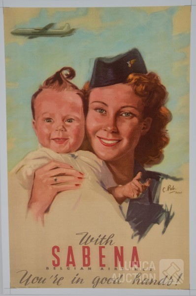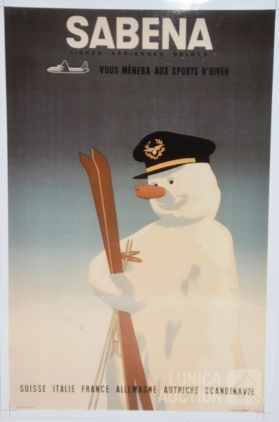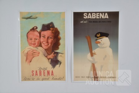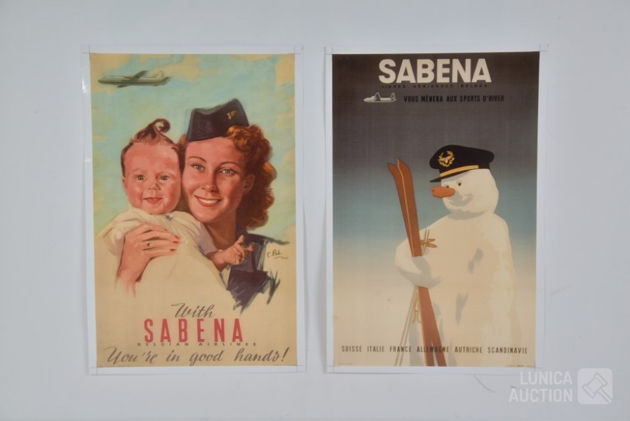 Het betreft hier een afdruk op fotopapier van 2 affiches van Sabena. Afmeting 29x45 cm. Originele druk lithografie Linsmo Brussel