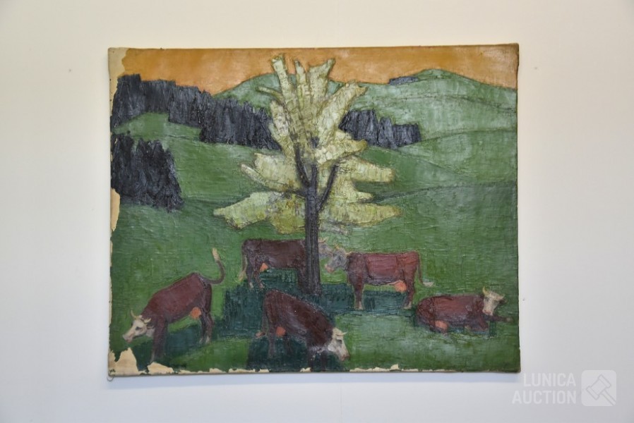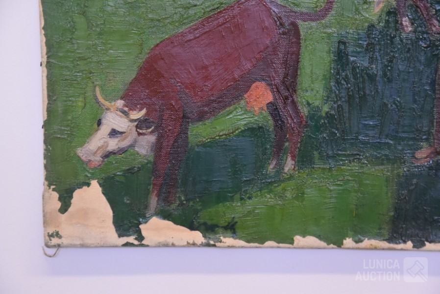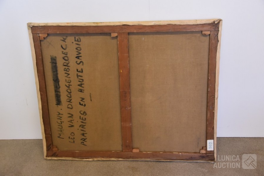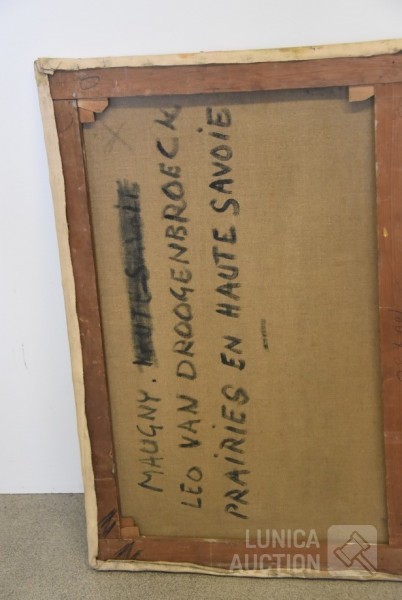 olieverf op doek, gesigneerd op de achterzijde, afmeting 100x80 cm. Enkele kleine beschadigingen in olieverf. Belgische kunstschilder van Droogenbroeck is afkomstig van Antwerpen en was schilder- beeldhouwer. Opleiding aan de Academie van Brussel. Maakte veel stillevens en portretten.