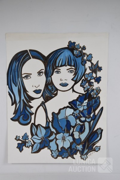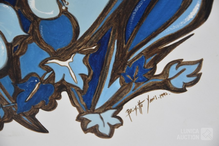 acrylverf op papier, niet ingelijst, gesigneerd R.O. Afmeting 50x65 cm. Lijst niet inbegrepen.