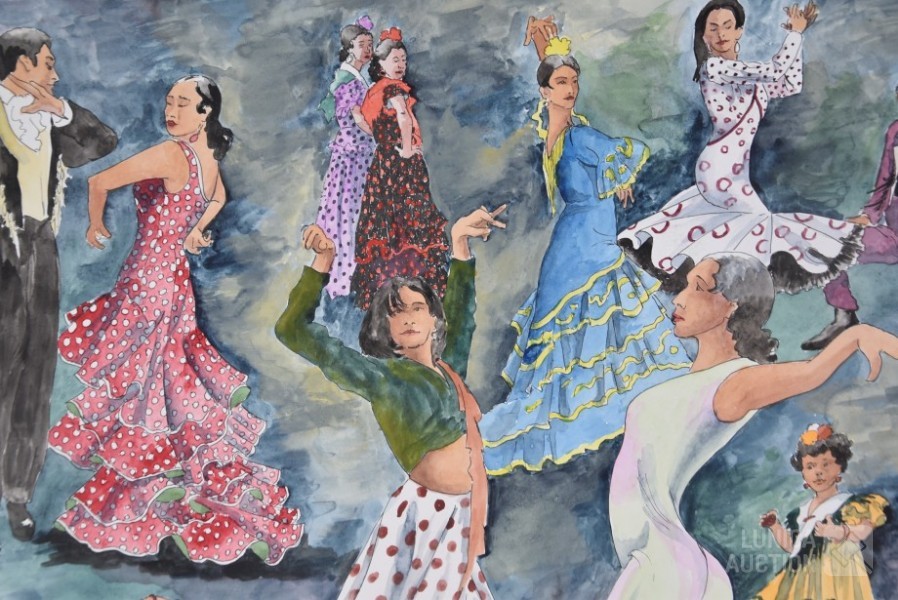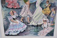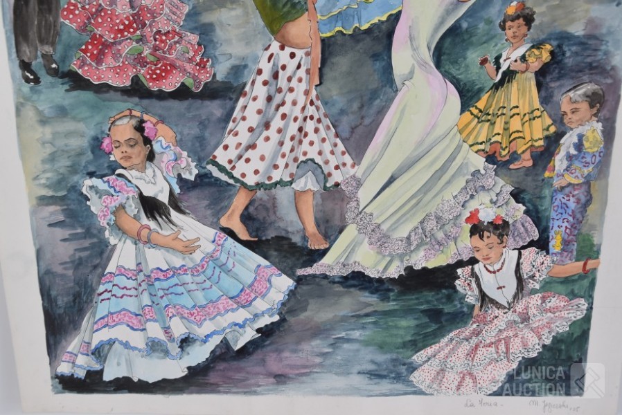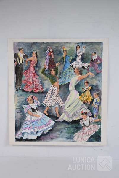 tekening/aquarel op papier, niet ingelijst, gesigneerd R.O., afmeting 55x55 cm.