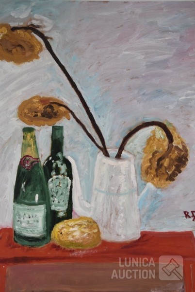olieverf op schilderskarton, gesigneerd met monogram RD, afmeting 60x80 cm. Lijst niet inbegrepen.