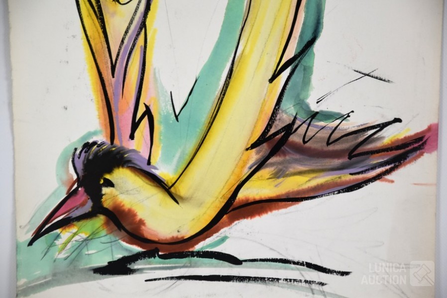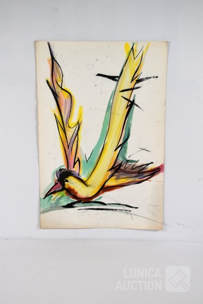 aquarel op papier, Gesigneerd op de achterzijde. Niet ingelijst. Afmeting 35x52 cm Toegeschreven aan Roulet.