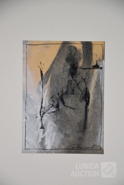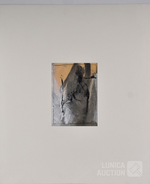 mixed media op papier, inclusief passe-partout. Afmeting passe-partout 60x70 cm. Gesigneerd R.O.
