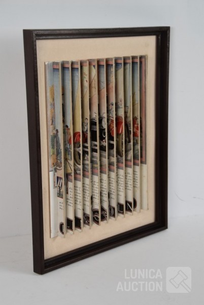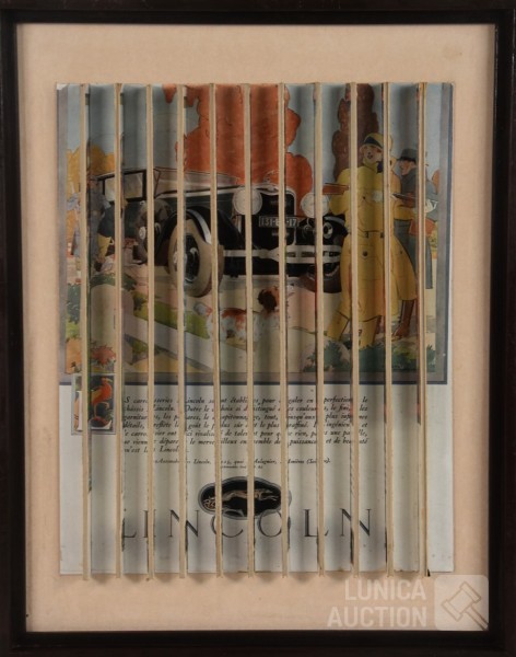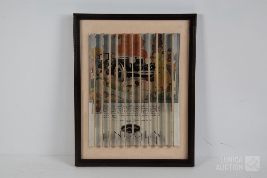 ingelijst, afmeting 37x47 cm. Afbeelding is reclame in van Lincoln. Het Atelier Bachwitz / Bachwitz AG , officieel actief van 1898 tot 1958, was een internationale uitgeverij die modeontwerpen en lifestylemagazines produceerde en distribueerde vanuit het Palais des Beaux Art te Wenen. De Afbeeldingen zijn gebruikt voor dit unieke 3D kunstwerk.