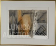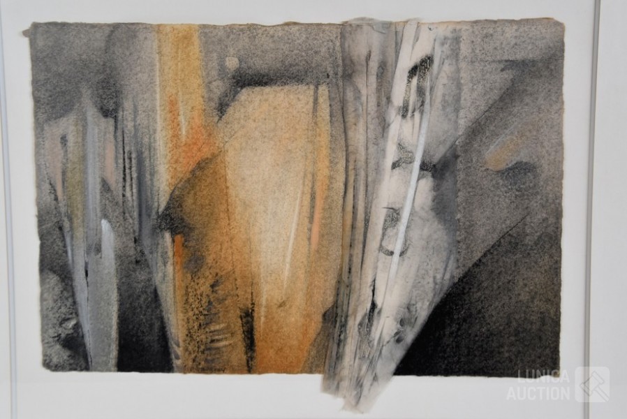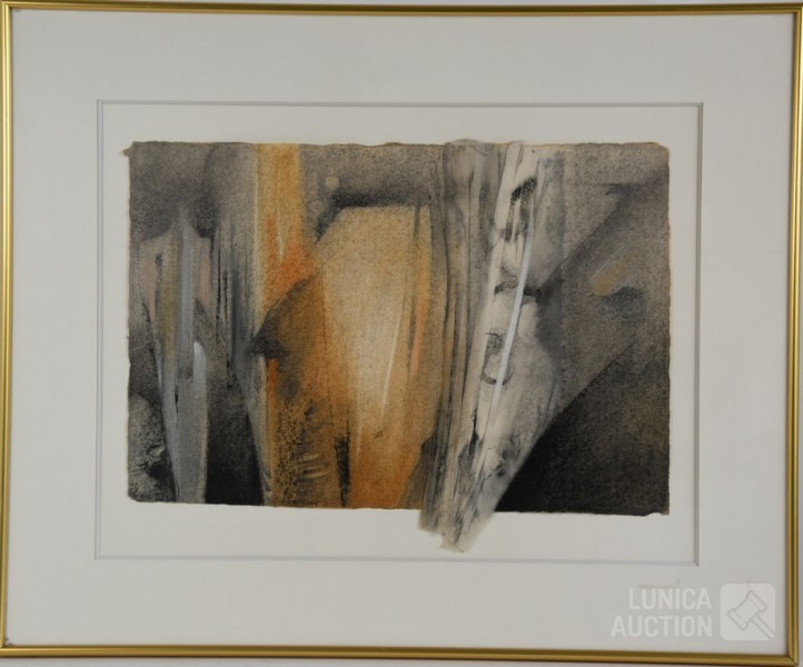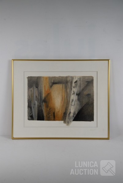 Mixed media, Ingelijst, achter glas, afmeting 67x55 cm. Gesigneerd R.O.