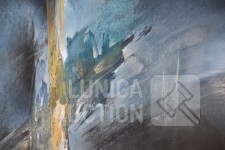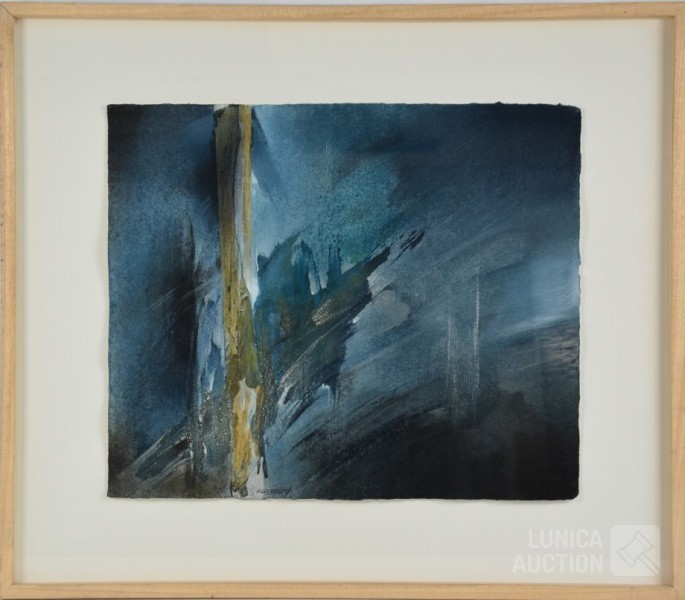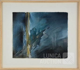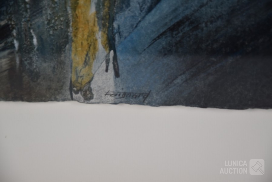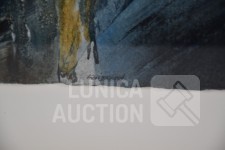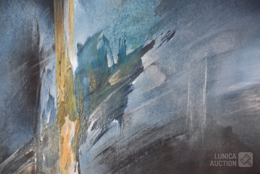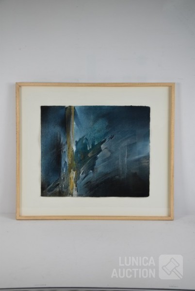 Mixed media, Ingelijst, achter glas, afmeting 75x65 cm. Gesigneerd L.O.