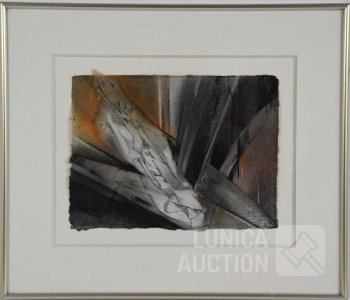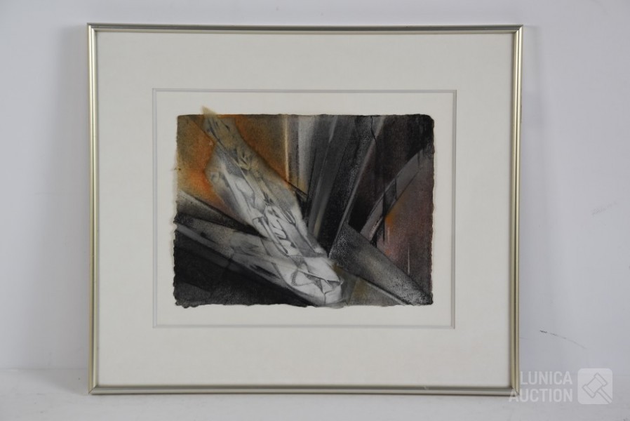 Mixed media, Ingelijst, achter glas, afmeting 48x40 cm. Gesigneerd R.O.