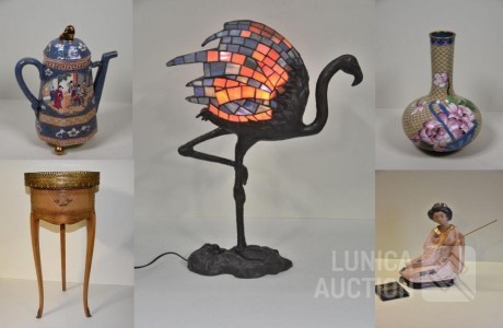 Bekijk de bijzondere veilingvoorwaardenIn deze nalatenschapsveiling te Belgisch Limburg bestaat het aanbod uit mooie inboedel, verzamel items en een prachtige verzameling tafellampen in Tiffany stijl. Zoals o.a fraaie Chinese kasten; Chinese sidetables; Mooie notenhouten eethoek; Salontafel met bronzen beeld van zeemeermin; Veel antieke kasten, antieke secretaires en fraaie plantentafels; Grote boekenkasten enz.; Veel porseleinen beelden van o.a. NADAL, CAPODIMONTE,UNTERWEISSBACH, GEROLD, SCHIERHOLZ enz.; Beelden van G. ARMANI; Klokken; Limburgse schilderijen van o.a. JOSY KENENS en MAURICE SMEETS enz.; Houtsnijwerk van LEOPOLD SCRAYEN; Veel kristal glaswerk, o.a. Val Saint Lambert, Boheems, Anna Hütte enz.; Veel prachtige vazen o.a. Cloisonné en Chinese vazen.; Serviezen; Grote kroonluchter; Glazen luchters van KAMENICKY SENOV; schommelbank en veel meer.