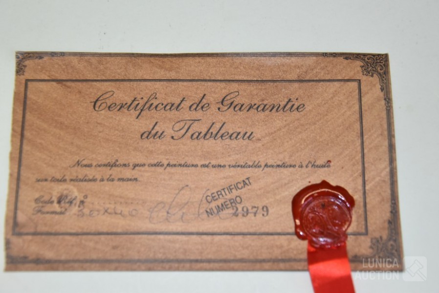 oleografie, op paneel, in mooie lijst. Met "certificaat". Afmeting (bxh) 48x60 cm.