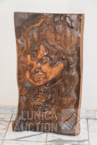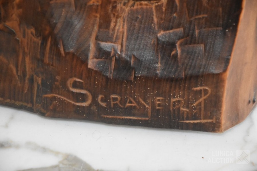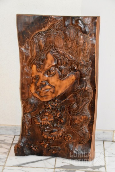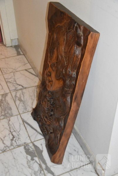 houten paneel, dikte 6 cm, Afmeting (bxh) 45x90 cm Gesigneerd R.O.