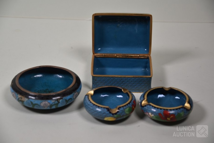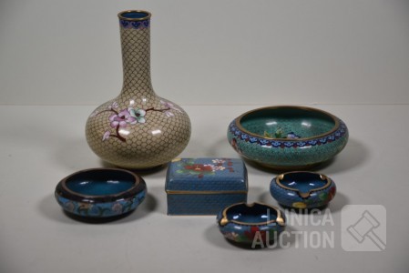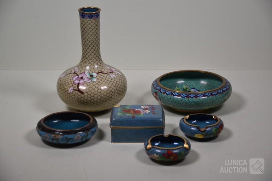 O.a vaas, hoogte 21 cm; opbergdoosje, afmeting 10x7 cm; Schaal, doorsnede 10 cm en 16 cm; enz.