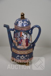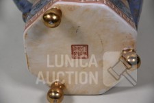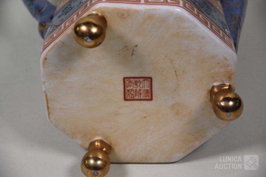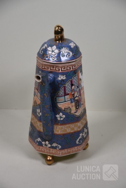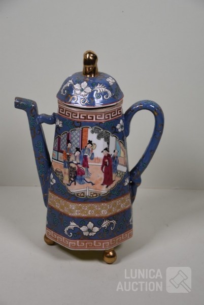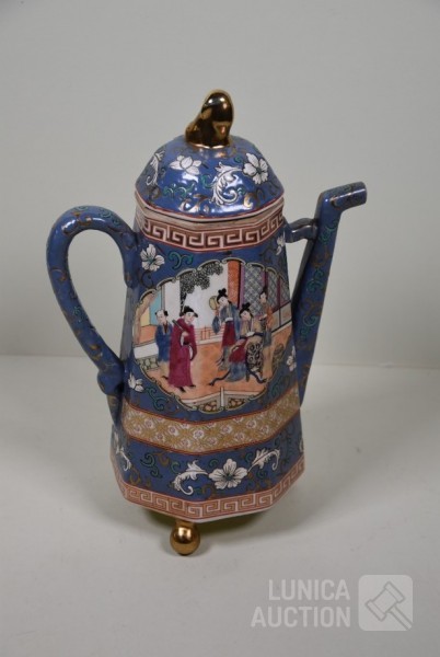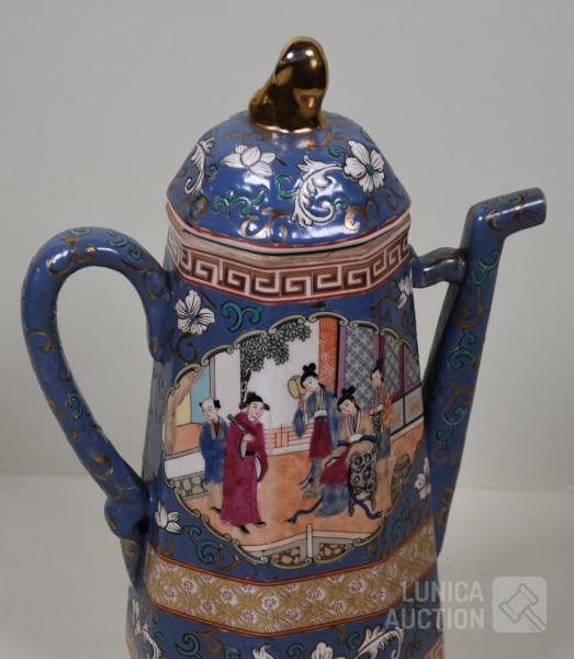 handeschilderd, vergulde knop van deksel, hoogte 31 cm.