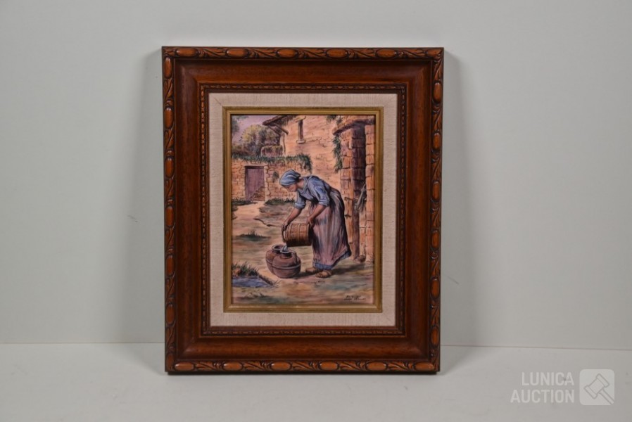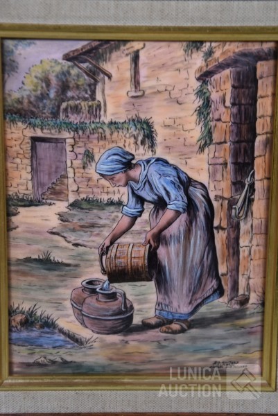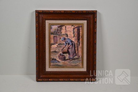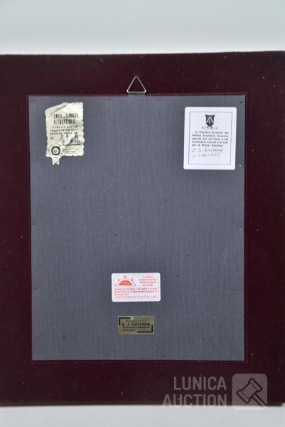 Ingelijst, nummer 8128. Afmeting 29x35 cm. Gesigneerd R.O. en achterzijde.