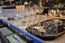 O.a. diverse wanddecoratie; veel glaswerk; onderzetters; bestek in besteklade; Grote oosterse borden/dienblad van messing/koper; enz. Items kunnen gebruikersporen hebben.