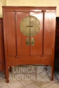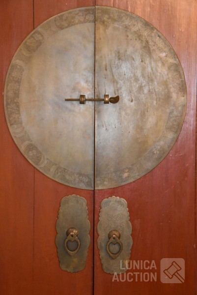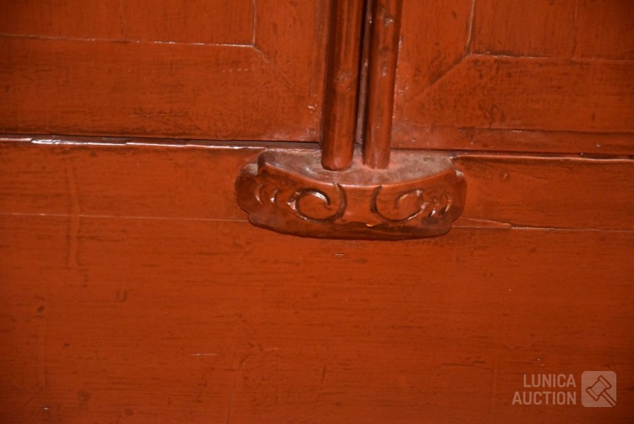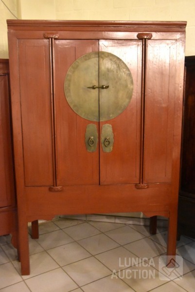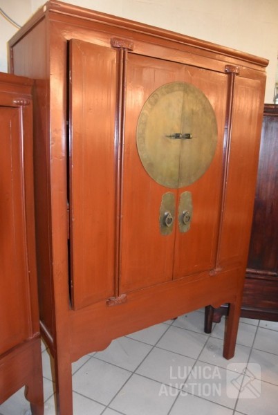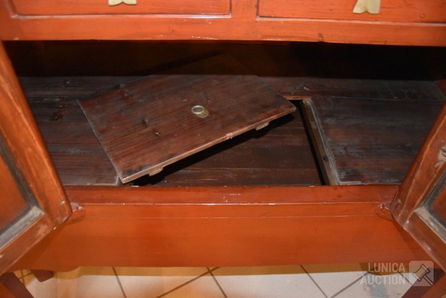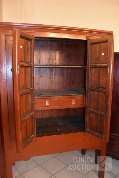 koperen beslag, 2 legplanken, 2 laden en verborgen luik in binnenzijde kast afmeting (bxdxh) 126x66x194 cm.