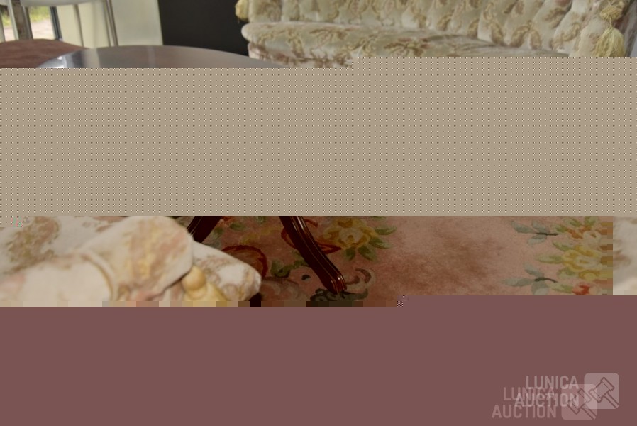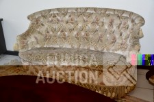 3 fauteuils, afmeting 80x75x80 cm; 2-zits bank 143x82x82 cm; Salontafel 65x140x47 cm; Hocker, 48x48x40 cm. Met gebruikerssporen.