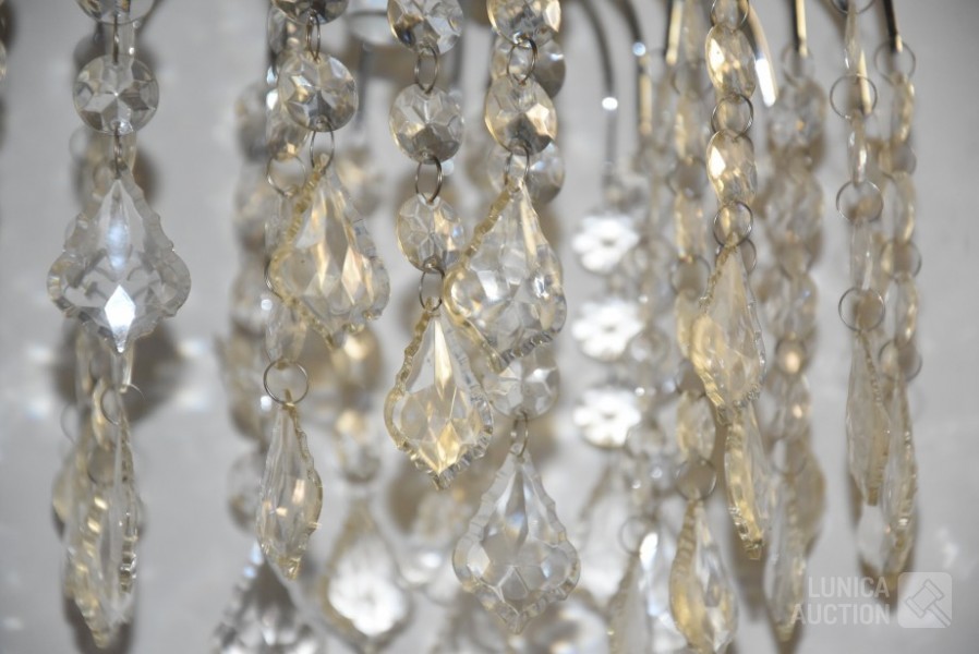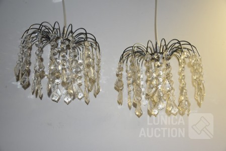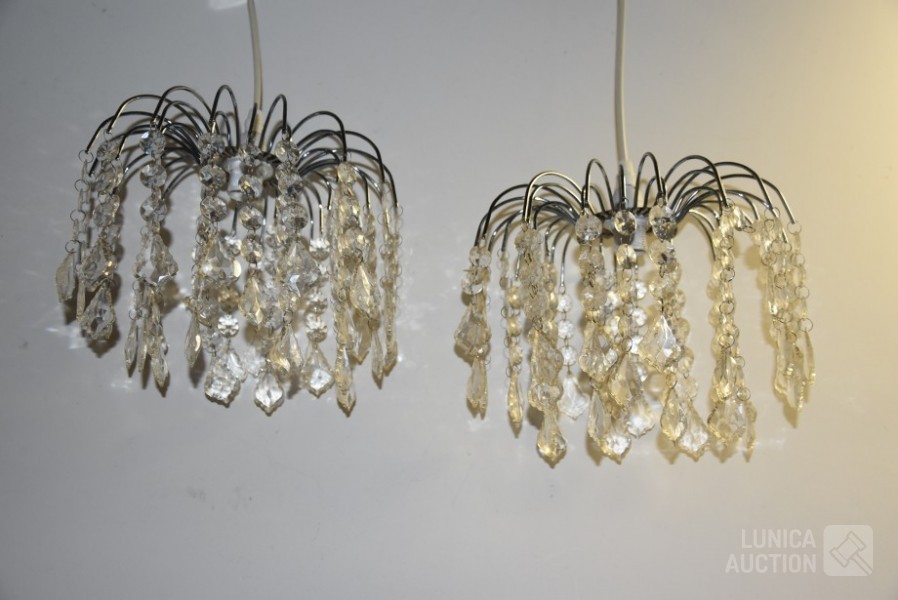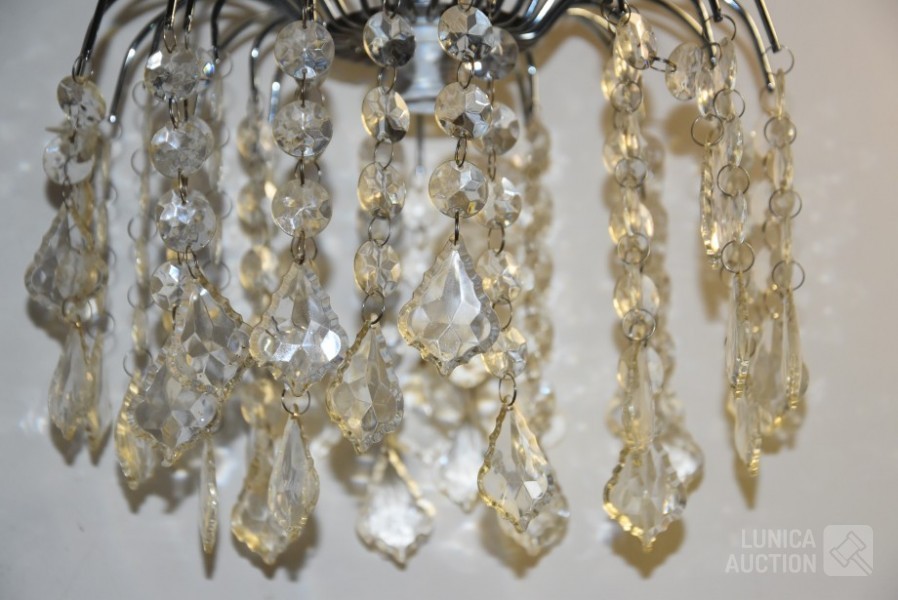 Doorsnede 26 cm, hoogte tot aan plafond 45 cm. Met glazen pegels