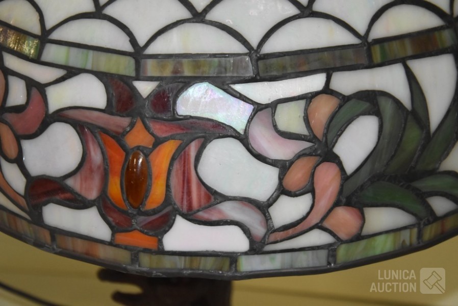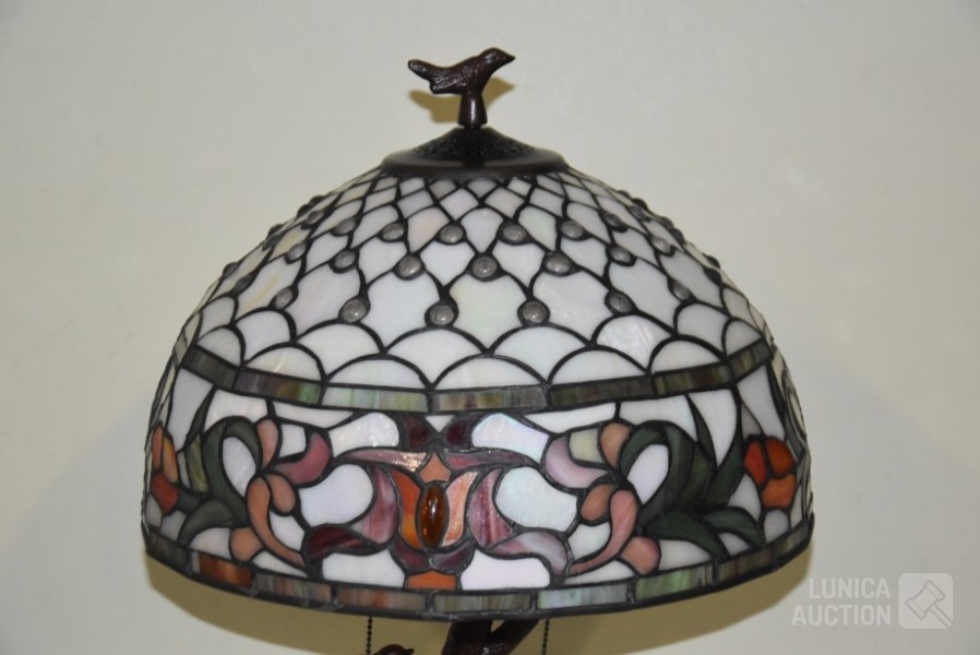 Hoogte 60 cm, doorsnede lampenkap 38 cm. Met trekschakelaars. Zonder lampen. In nieuwstaat.