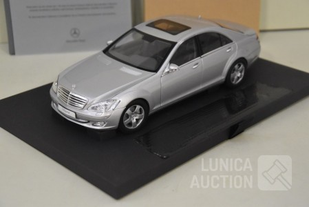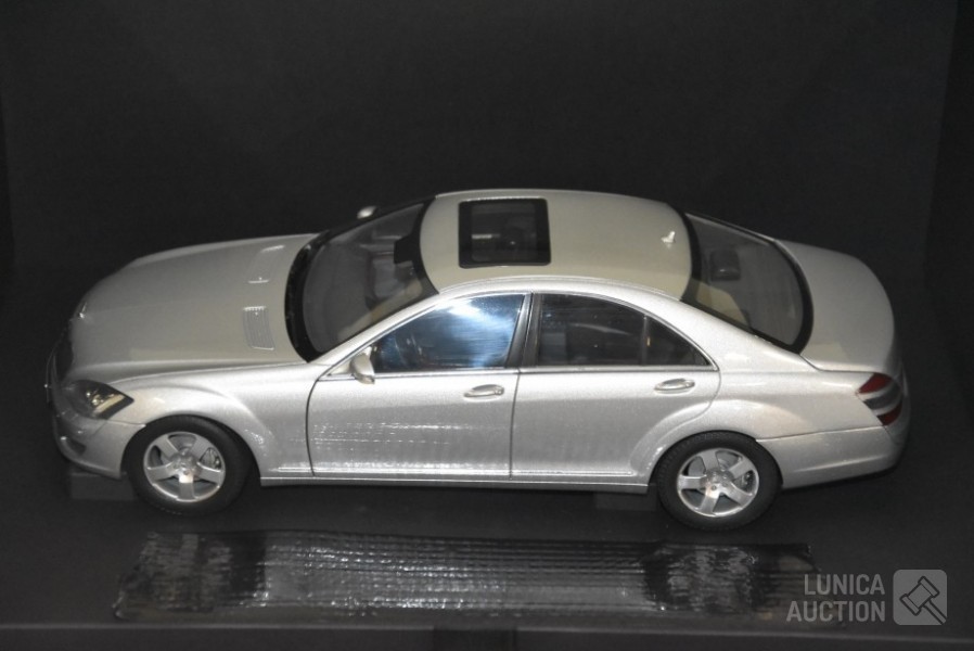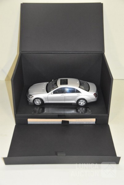 Met boekjes over de geschiedenis S-klasse, in luxe opbergdoos. Lengte auto 28 cm. Opbergbox afmeting 35x20x25 cm.