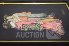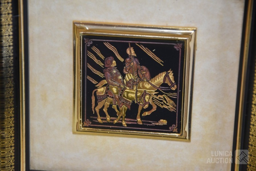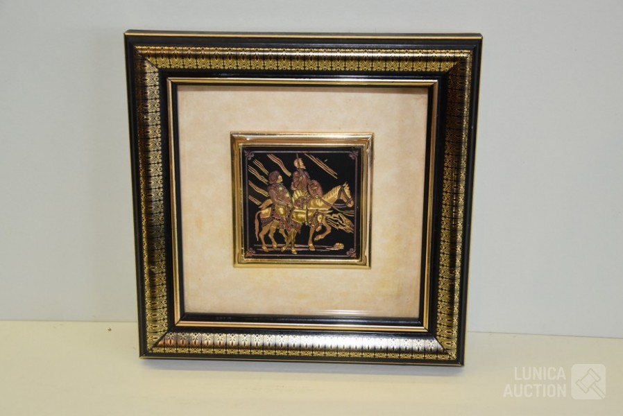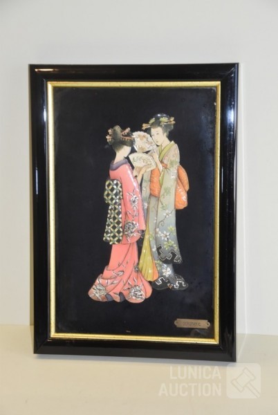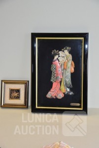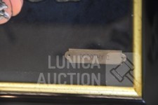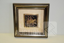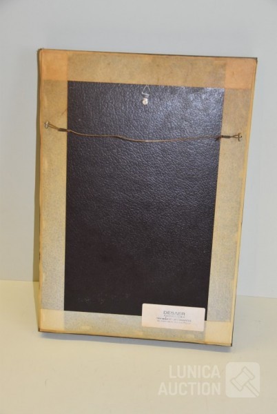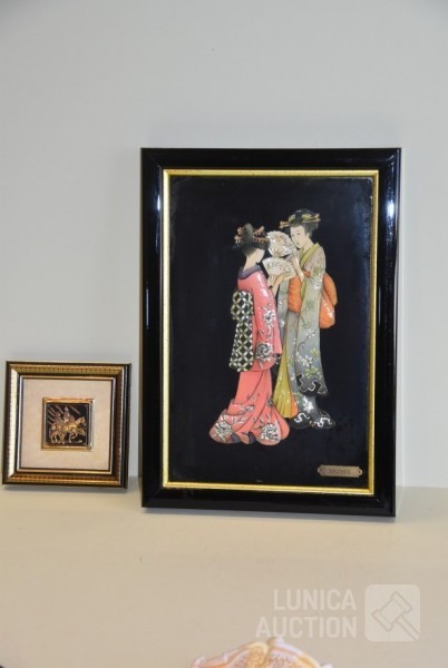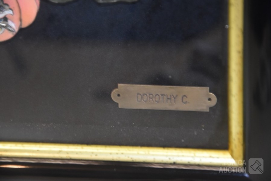 Gesigneerd met koper plaatje "Doroty C", achter glas, Afmeting (bxdxh) 28x4x40 cm; Kleine wanddecoratie, afmeting 14x14 cm.