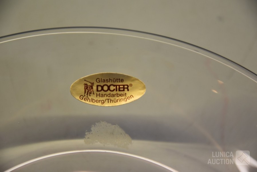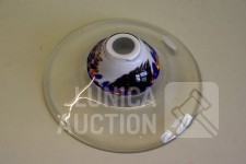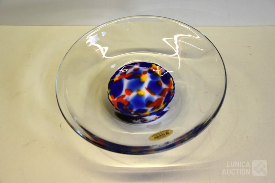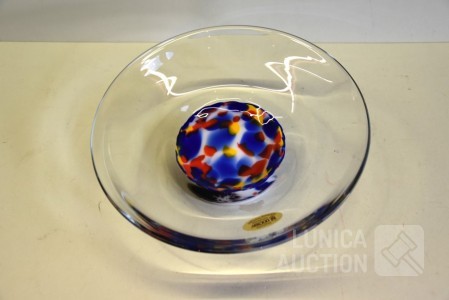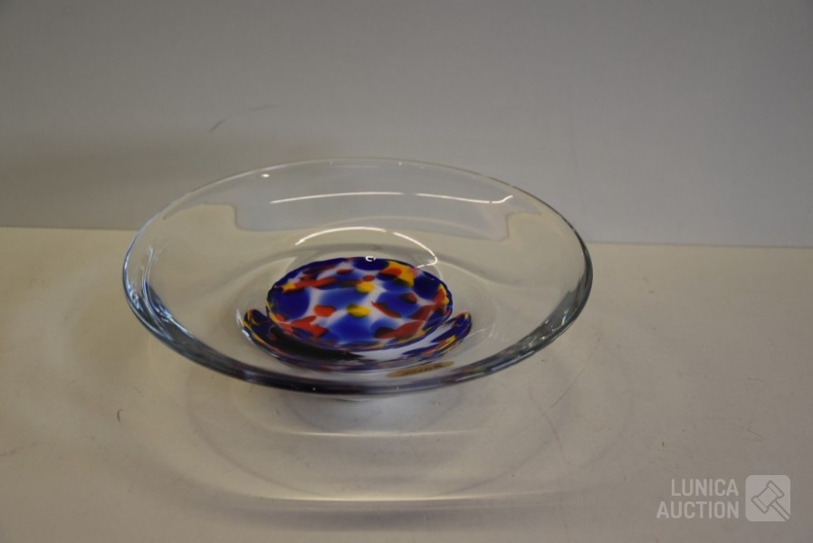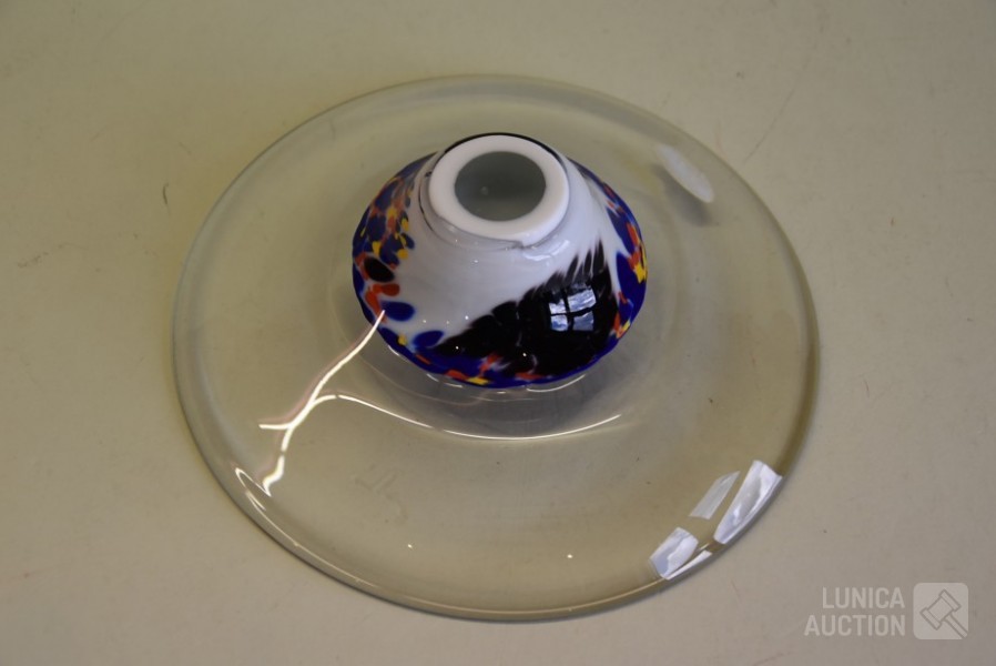 meerkleurig glas. Doorsnede 22 cm, hoogte 7 cm.
