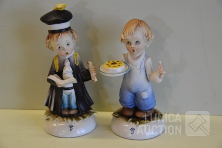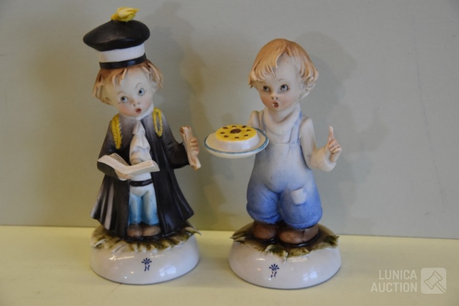porselein, hoogte 10 cm en 11 cm. In goede staat.