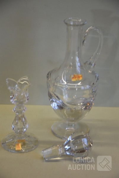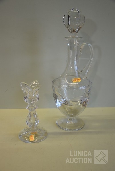O.a. kandelaar, hoogte 15 cm; Karaf, hoogte 33 cm; Vaas, hoogte 35 cm